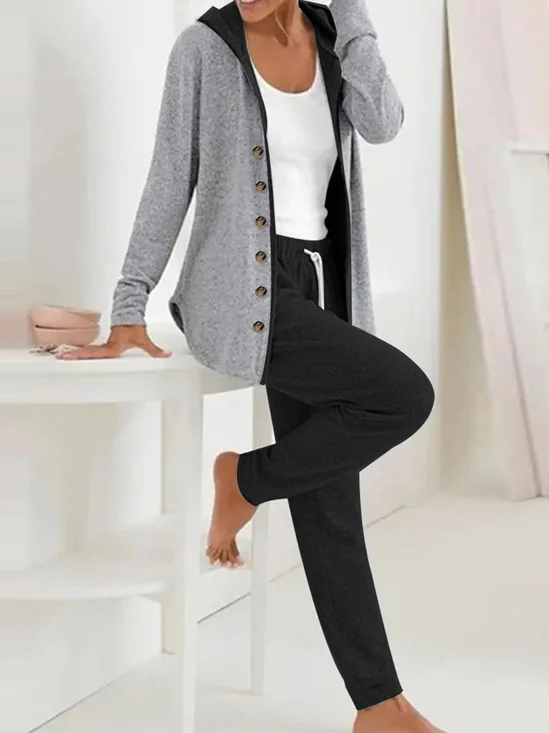 Damen Geometrisch Kapuze Langarm Bequem Lässig Bluse mit Hose Zweiteiliges Set