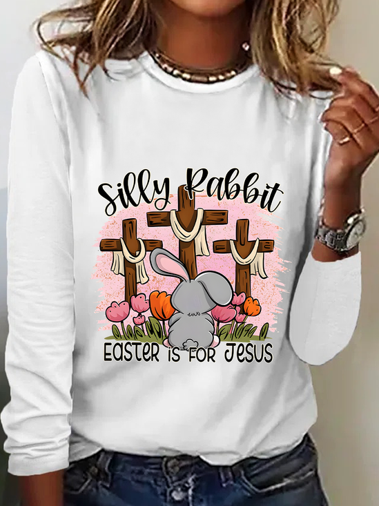 Lässig Unifarben Rundhals Langarm T-Shirt