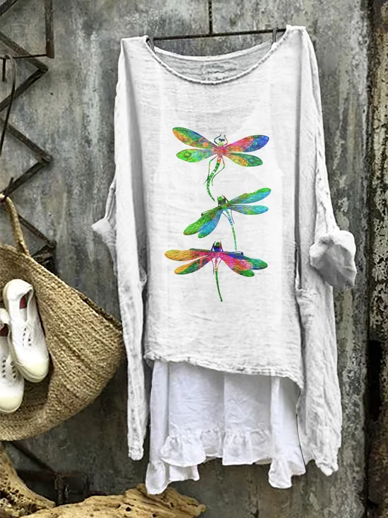 Retro Unifarben Wasserfallausschnitt Langarm T-Shirt