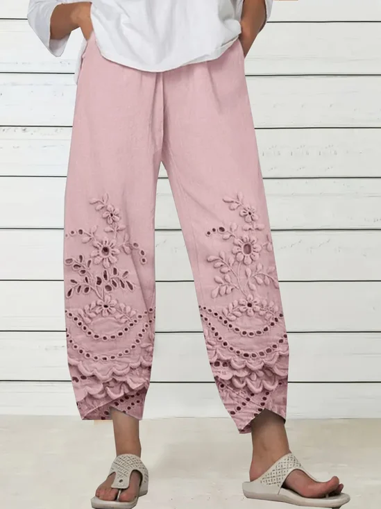 Damen Baumwolle Leinen Spitze Tasche Freizeithose