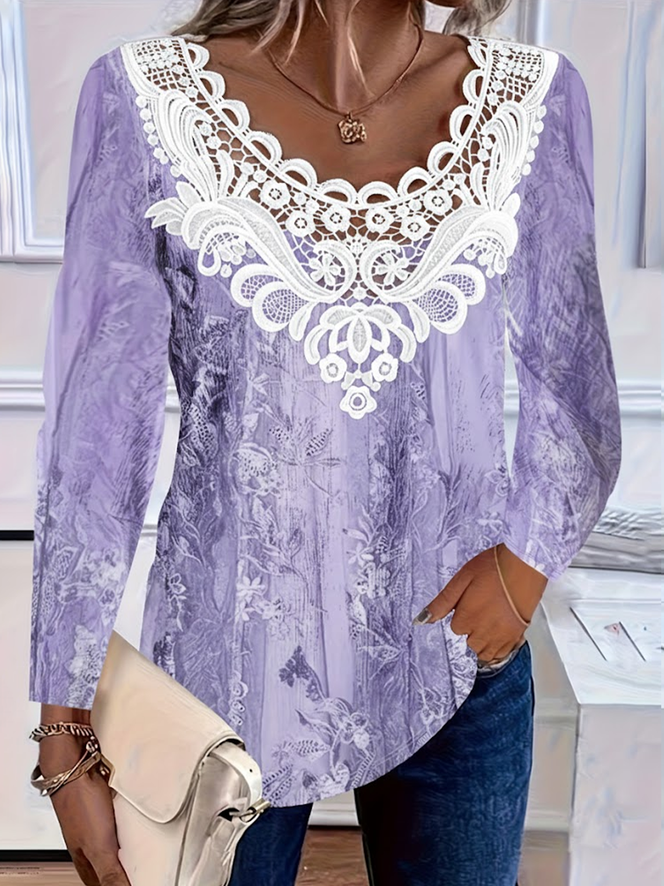 Lässig Abstrakt Rundhals Langarm T-Shirt