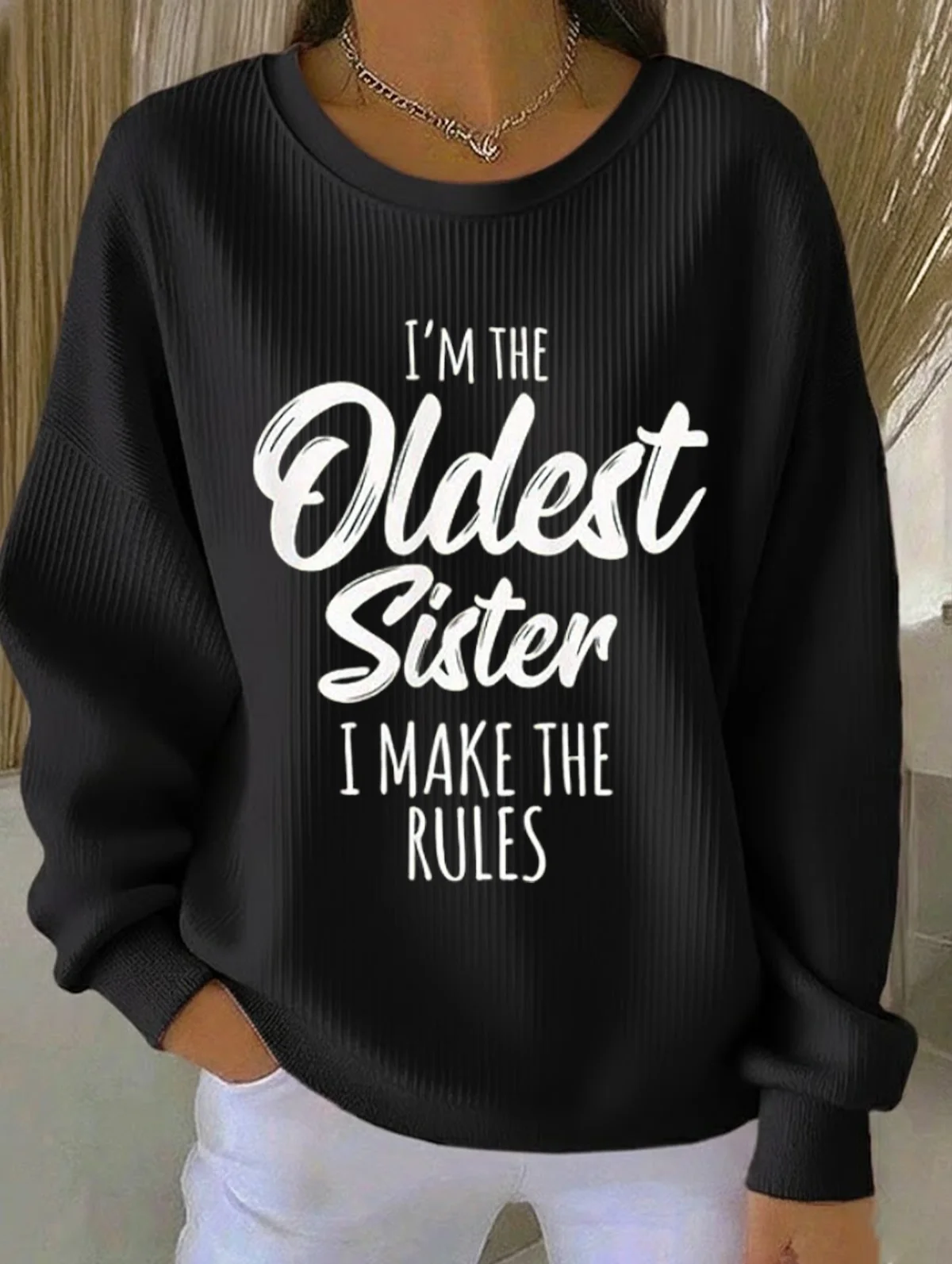 Lässig Rundhals Textbriefe Sweatshirt Print
