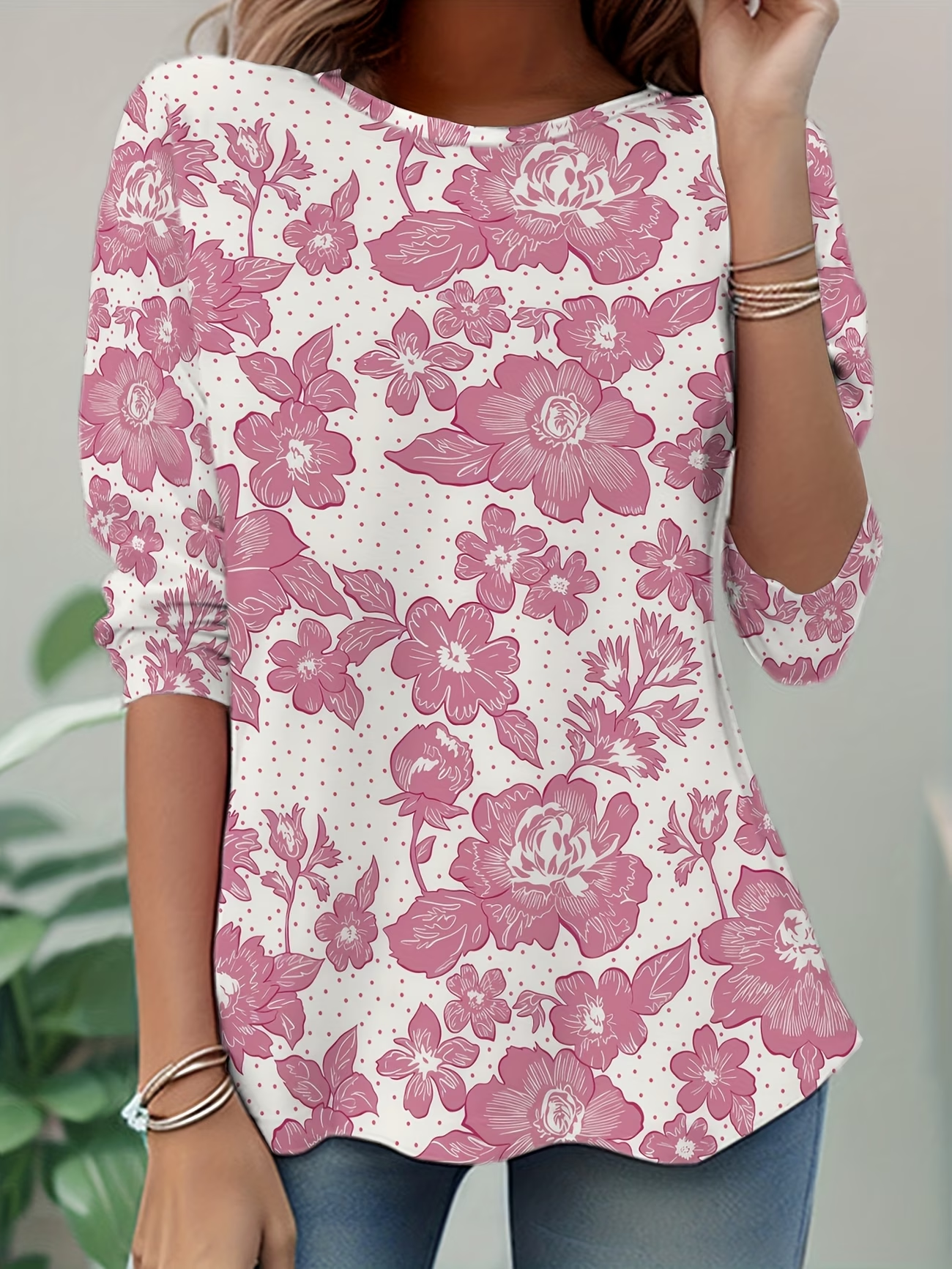 Lässig Geblümt Rundhals Langarm T-Shirt
