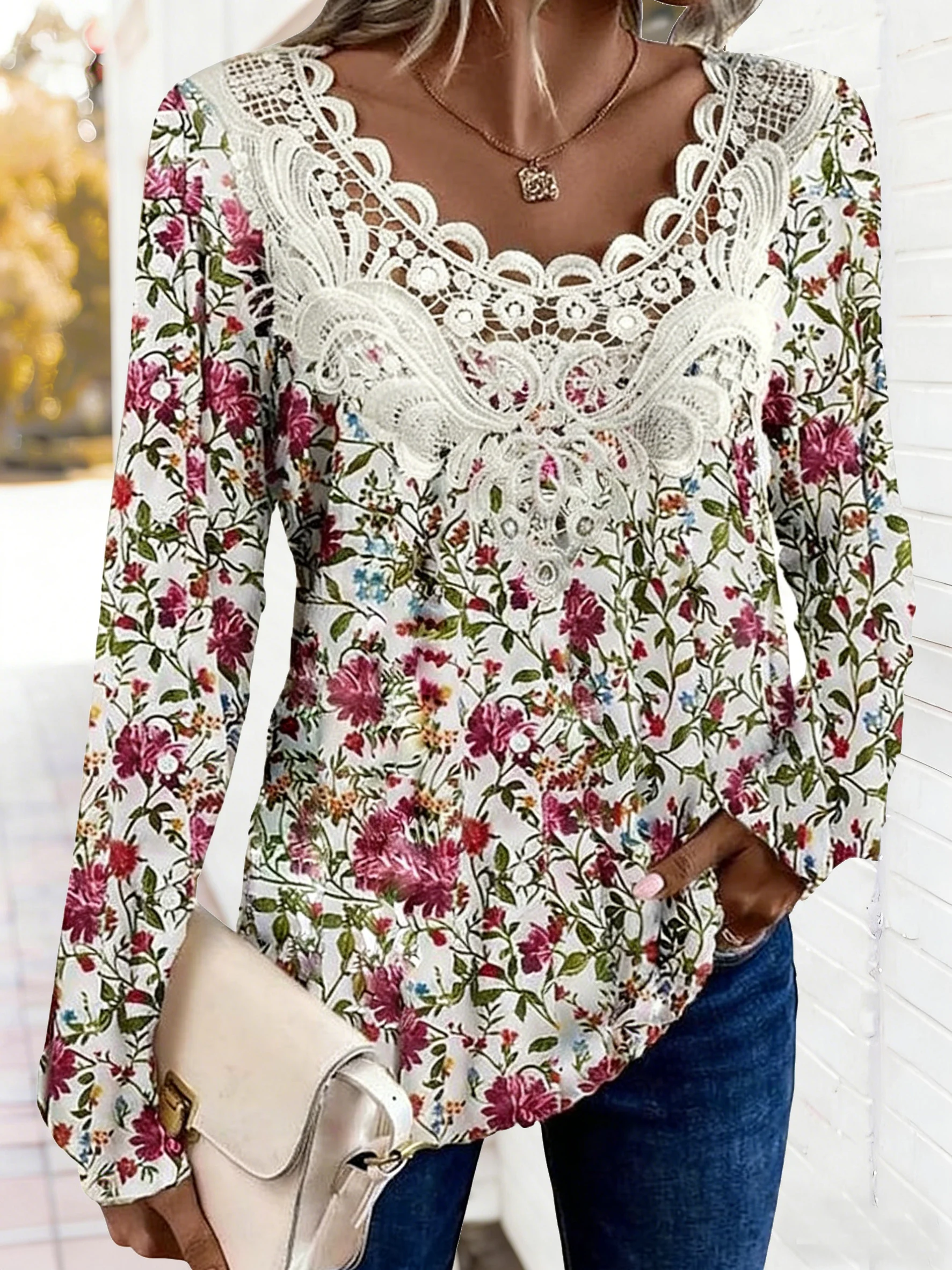 Lässig Pflanzen V-Ausschnitt Langarm T-Shirt
