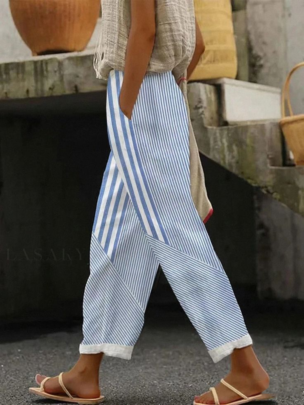 Lässig Gestreift Lang Print Hose
