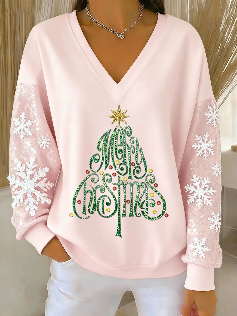 Lässig V-Ausschnitt Weihnachten Sweatshirt