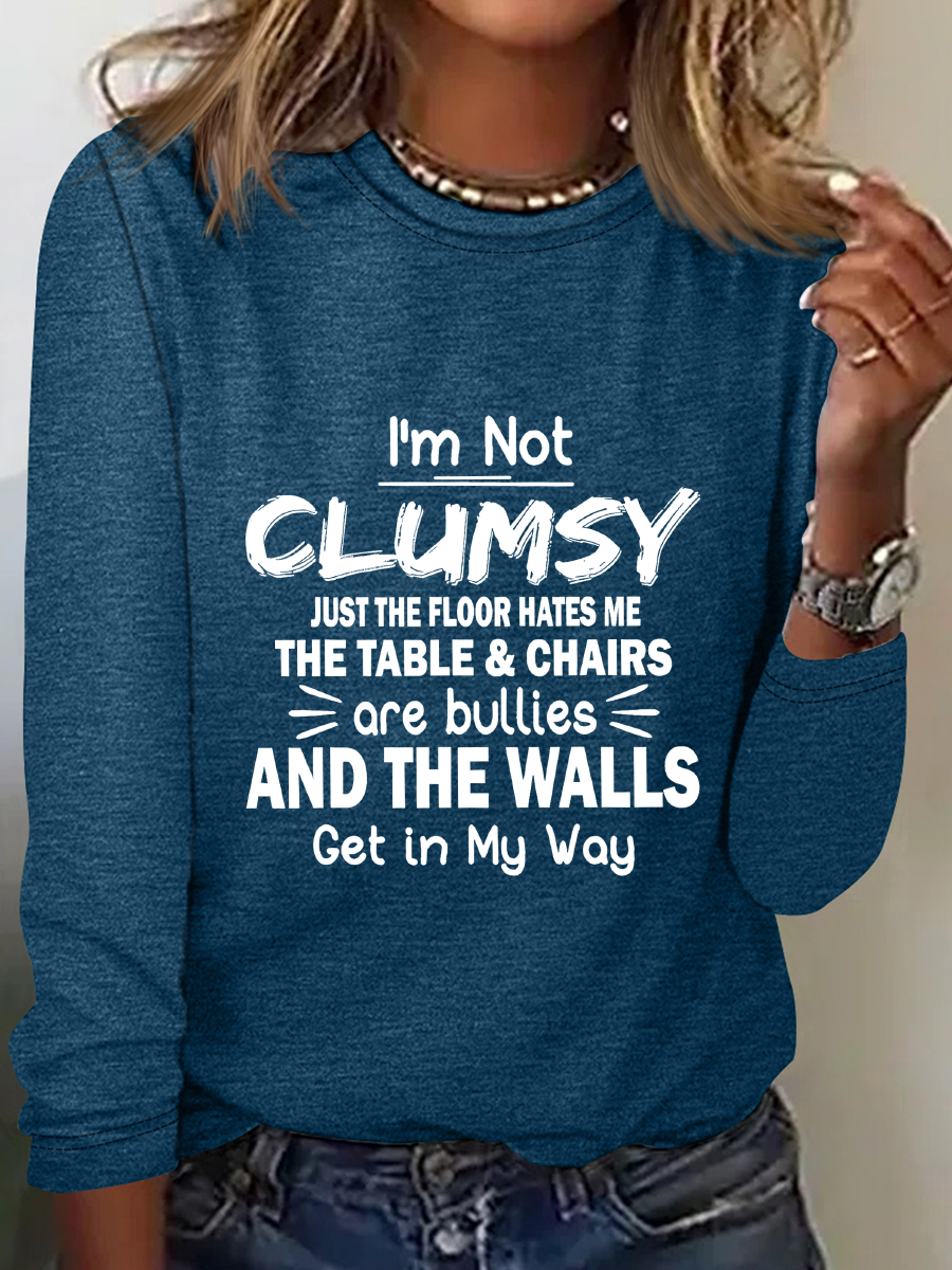 Rundhals Langarm Textbriefe Regelmäßig Weit Bluse für Damen