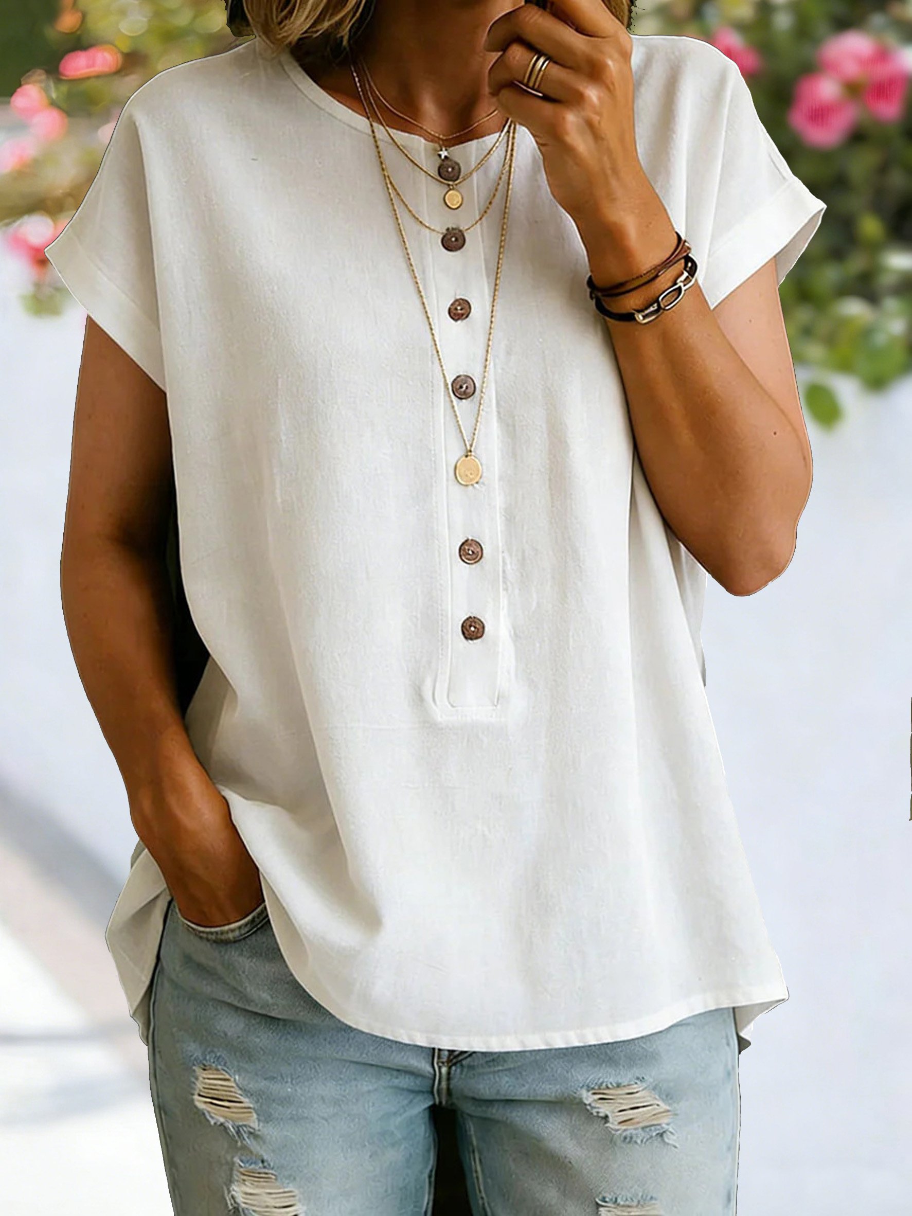 Rundhals Kurzarm Unifarben Regelmäßig Weit Bluse für Damen