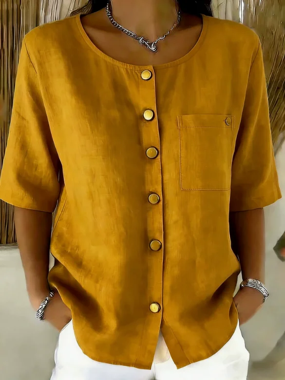 Rundhals Kurzarm Unifarben Regelmäßig Weit Bluse für Damen