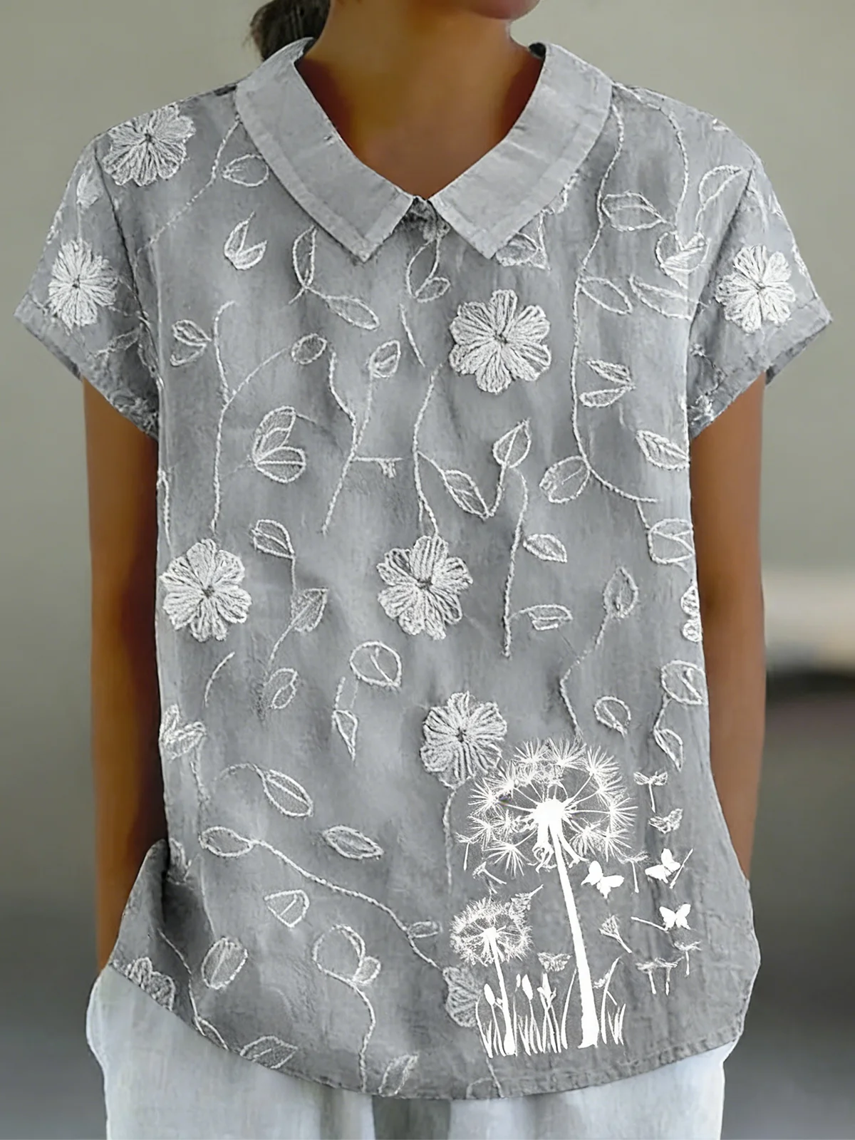 Schalkragen Kurzarm Geblümt Regelmäßig Weit Bluse für Damen