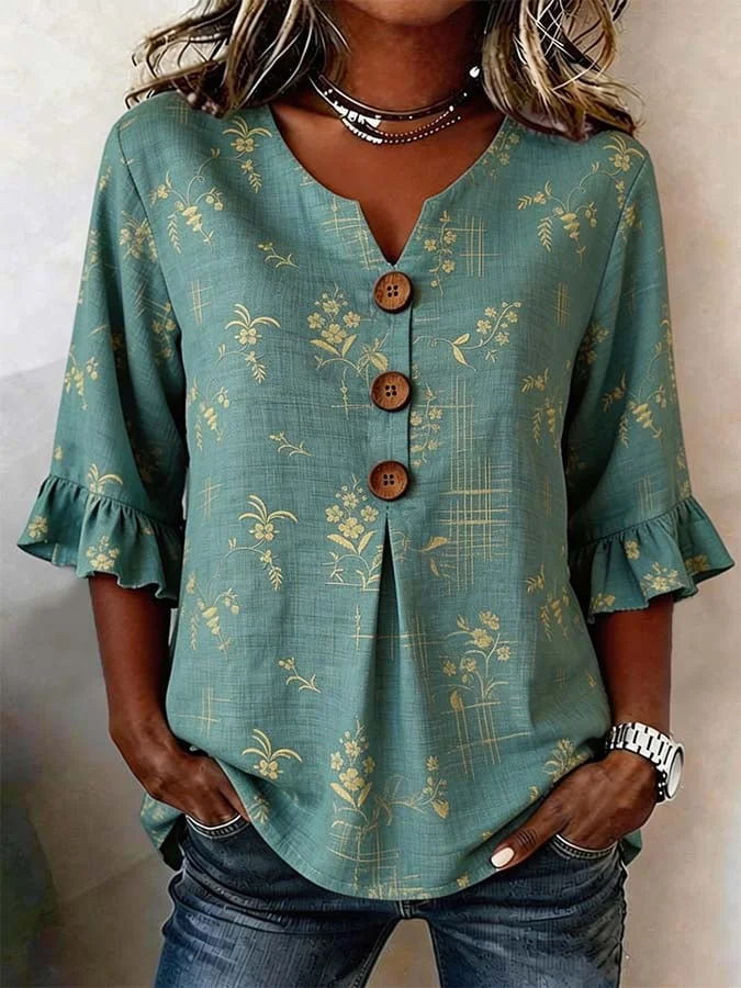 V-Ausschnitt Halbarm Geblümt Print Regelmäßig Mikroelastizität Regelmäßige Passform Bluse für Damen