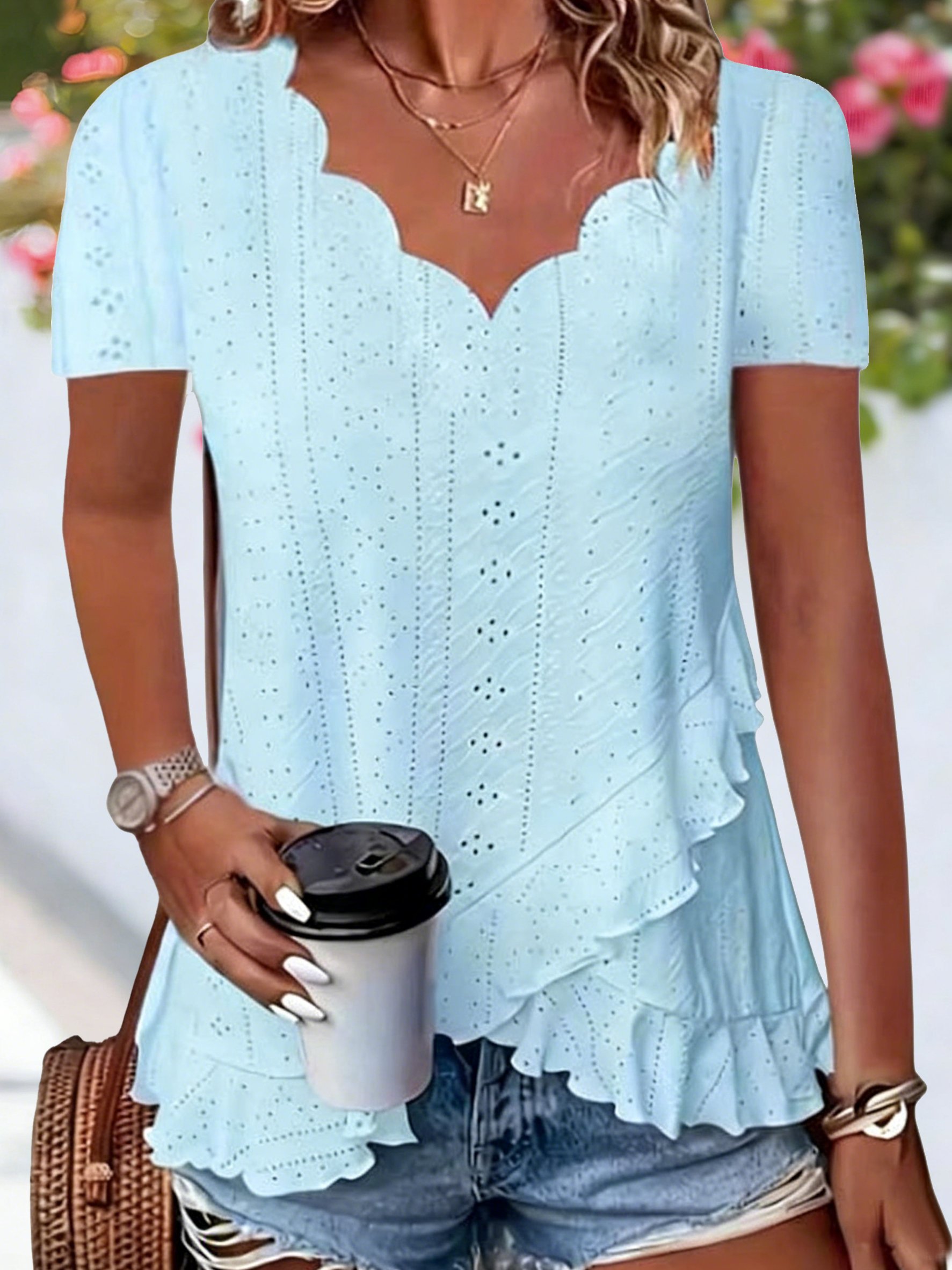 V-Ausschnitt Kurzarm Unifarben Regelmäßig Mikroelastizität Regelmäßige Passform Bluse für Damen