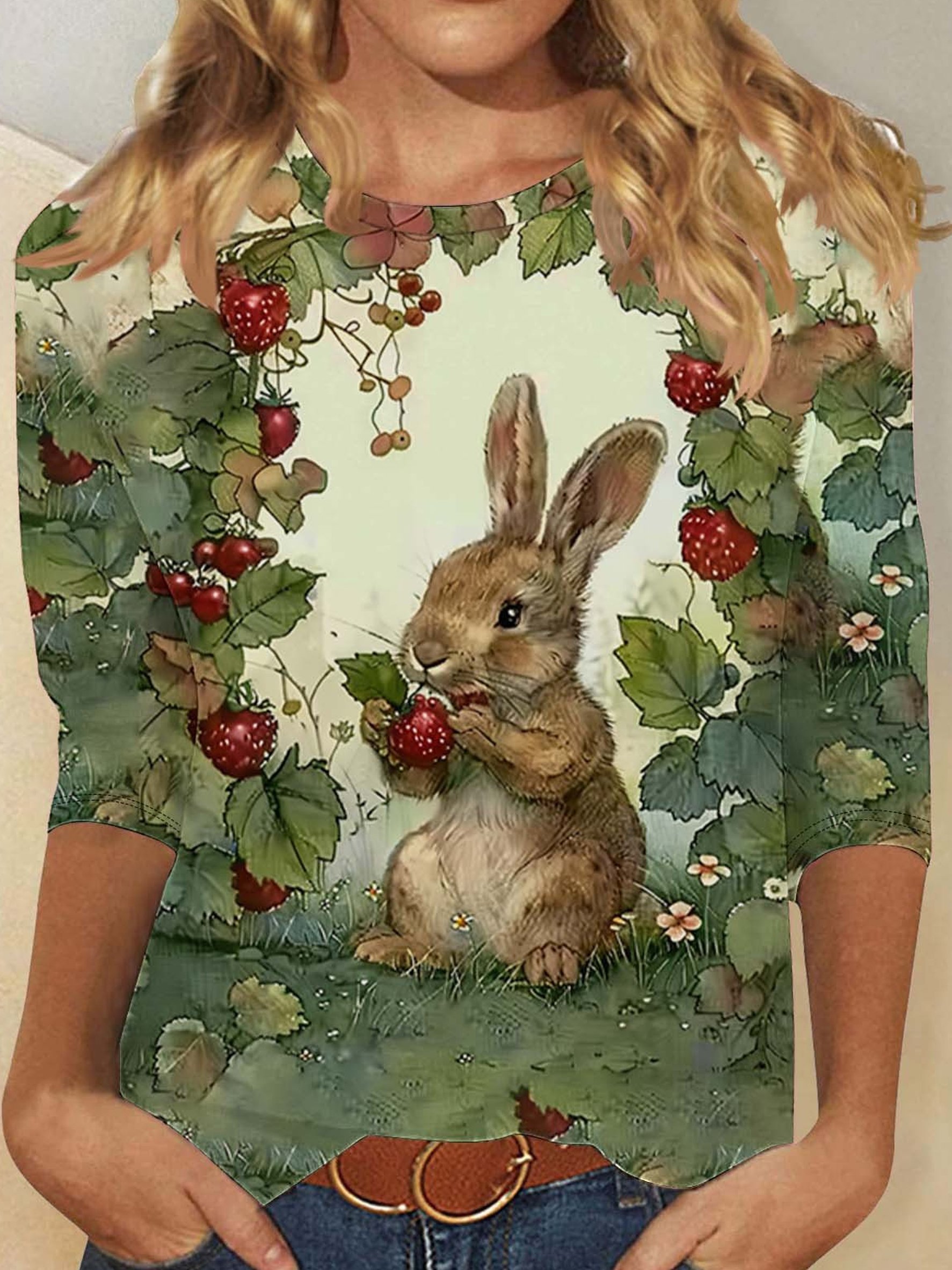 Retro 3d Drucken Rundhals Dreiviertelärmel T-Shirt
