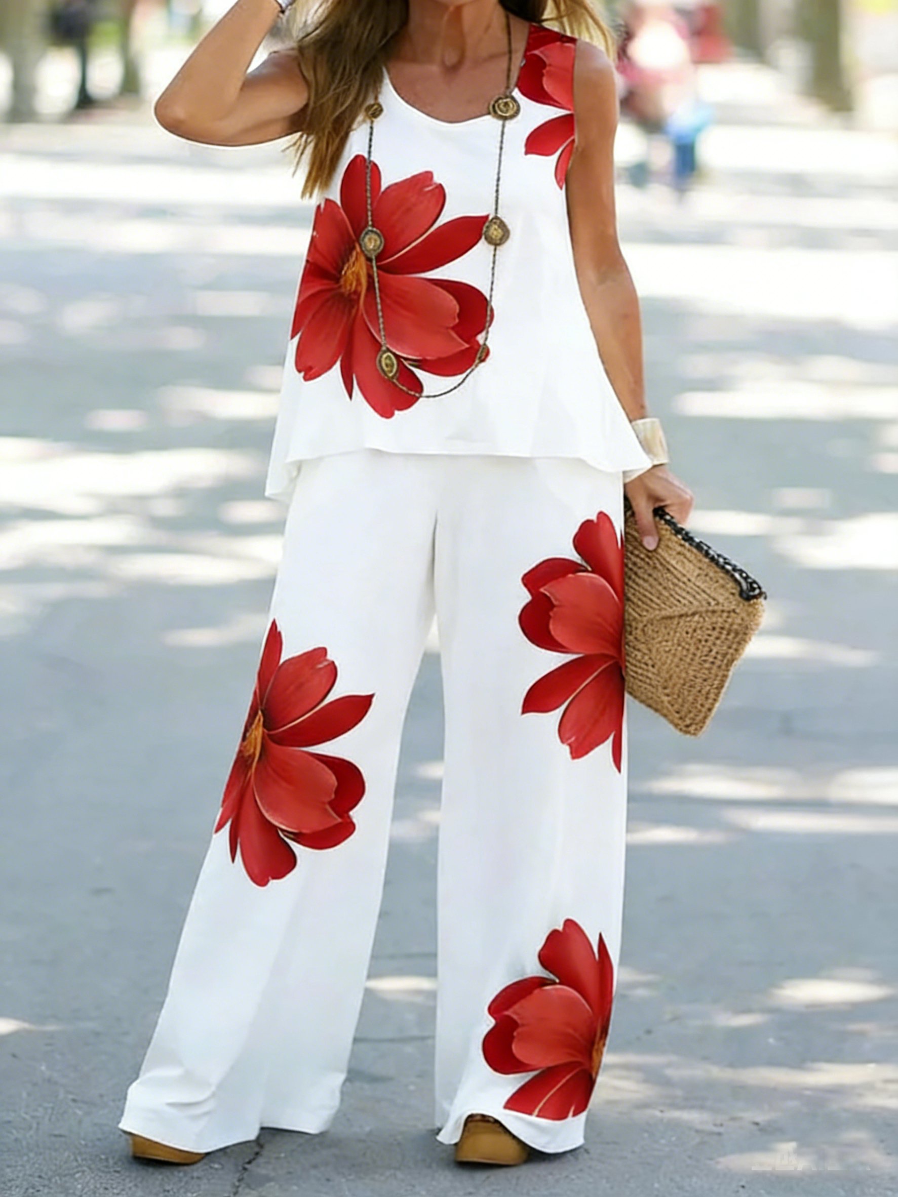 Damen 3d Drucken Zweiteiliges Set Täglich Ärmellos Lässig Sommer Bluse mit Hose Matching Set