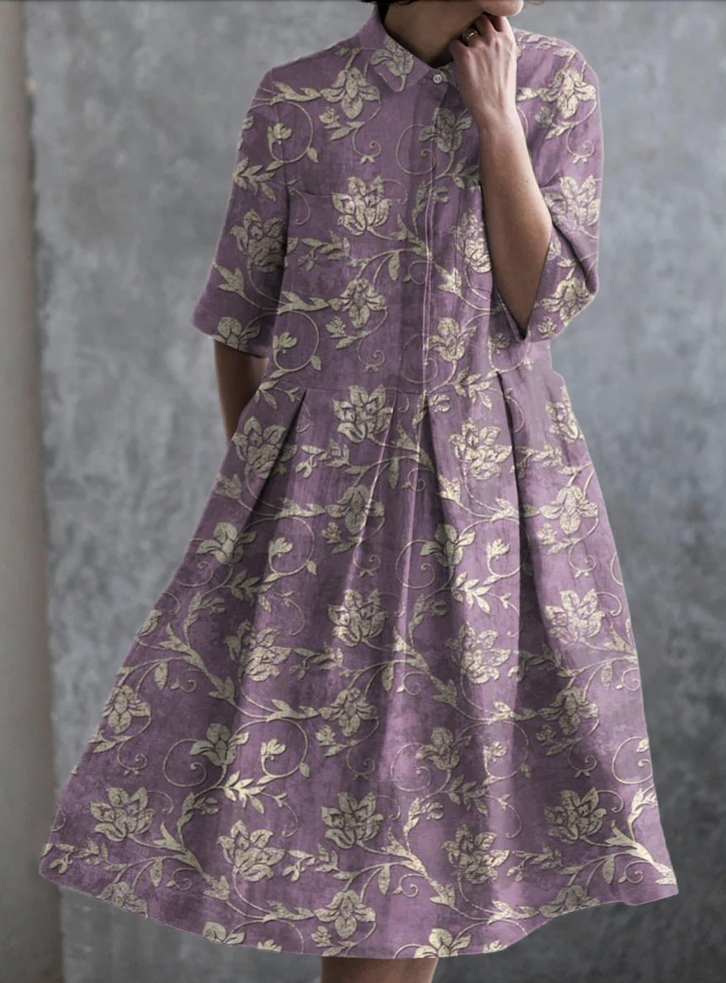 Damen Geblümt Hemdkragen Halbarm Bequem Lässig Maxikleid